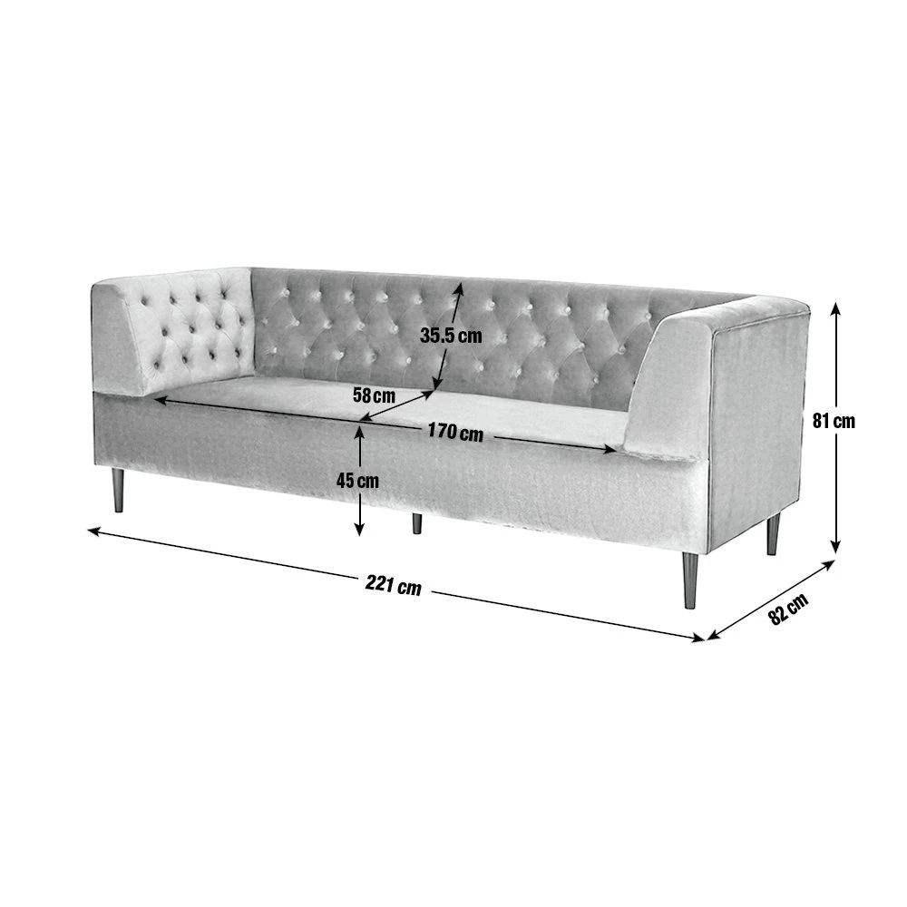 - Size H81, W221, D82cm.