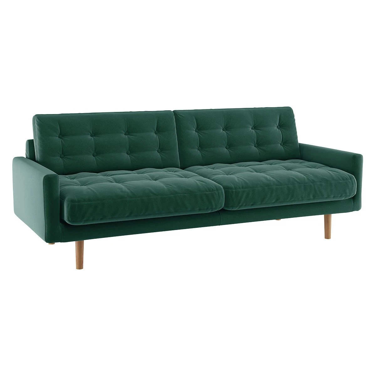 Made in Italy, the Fenner emerald velvet 3 seater sofa has slender cushioned arms and soft, feather-wrapped fibre seat and back cushions. The sumptuous sofa combines a classic box frame with loose covers for a softer look and has button detailing on its cushions, which acquire a relaxed, comfortably lived-in look over time. Exclusive to Habitat, the sofa's deep seat and thin frame create a large seating area; available in a choice of fabrics, colours, sizes and configurations, the design offers luxe for less.