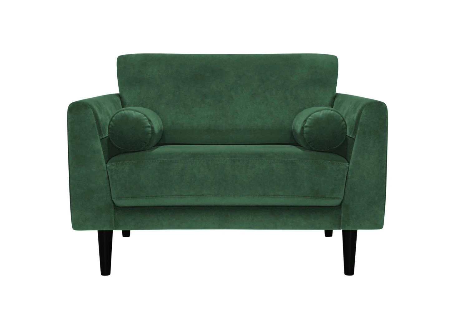 Cosy up with Jacob. Upholstered in a jewel green velvet this mid-century modern cuddle chair is comfy and luxurious. Sink into the low, wide pocket sprung foam seat. Snuggle into the plump and squishy bolsters. And lean against the fibre-filled cushioned back rest. Now breathe. Relaxation achieved.