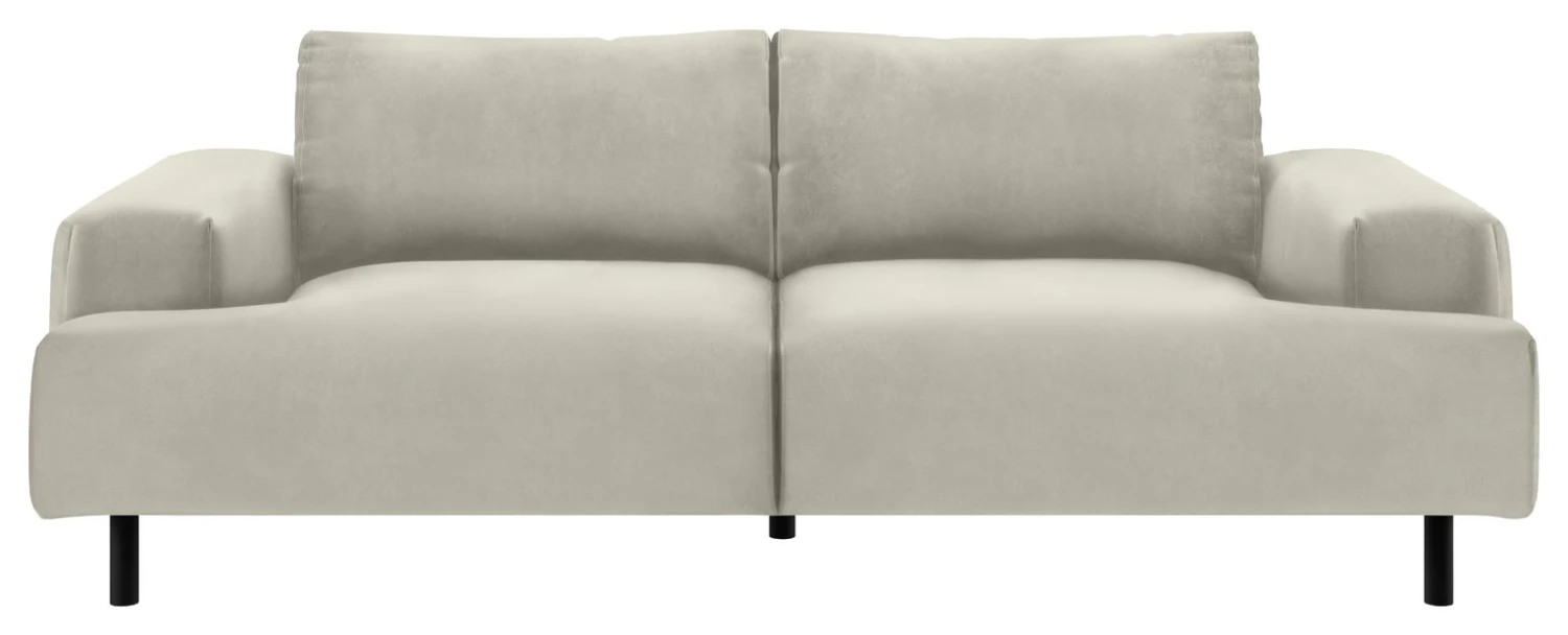 Introducing Julien. A Habitat design exclusive that will make mad men eat their hearts out. Recognise the authentic mid-century style notes? T-shaped seat cushions, foam filled to be soft but firm. Nice. The pillow style back, wide boxy arms and a wrap-around front finishes the look. Totally iconic. This is really cool, stuff. And all beautifully upholstered in the most gorgeous, sumptuous natural velvet. Drooling yet?