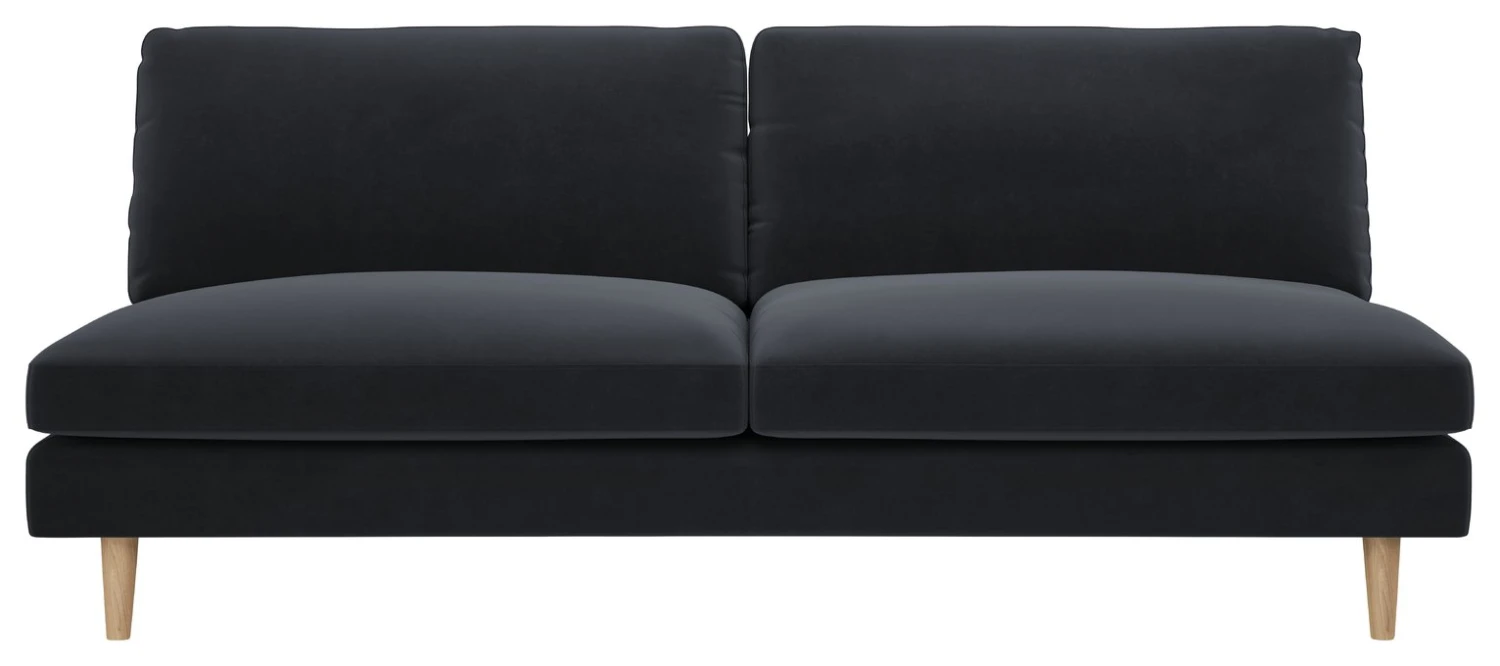 With its pared-back design and plump, pillow-like seat and back cushions, the Teo charcoal Jade velvet 3 seater has a fun feel and a small footprint. Created in the Habitat Design Studio and made in Europe, the contemporary foam and fibre sofa has a relaxed, informal look, enhanced by its wrapped cushion covers. Its armless design and dowelled wood legs give the design a light, airy feel, perfect for smaller spaces. Upholstered in our easy velvet fabric which is super durable and spill-resistant, it's perfect for busy homes.
