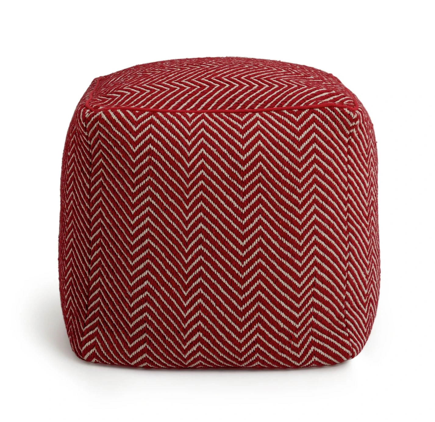 Beautifully textured, this Durrie cosy, natural woven cotton footstool is perfect for lounging. Put up your feet and kickback. Got friends over, then you've got a perfect extra perch at the ready. An inspired and multifunctional choice for any home. With a repeating zig zag pattern in the red and white 100% cotton weave, our pouffe has a truly artisan feel.